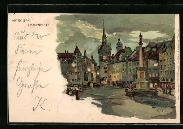 Künstler-AK Gottfried Graf: München, Marienplatz
