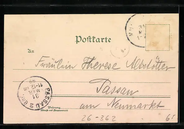 alte Ansichtskarte, gelaufen 1899, Briefmarke entfernt, guter Zustand