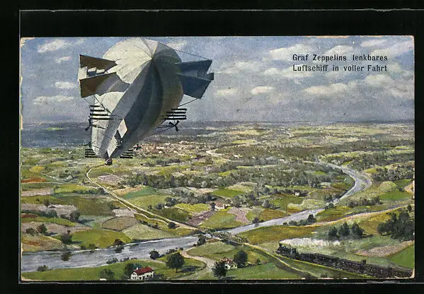 Künstler-AK Graf Zeppelins lenkbares Luftschiff in voller Fahrt