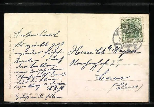 alte Ansichtskarte, gelaufen, Bugspur oben li., guter Zustand