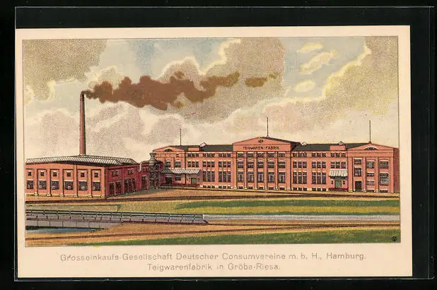 Künstler-AK Gröba-Riesa, Teigwarenfabrik