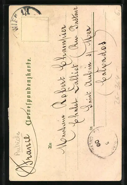 gelaufen 1900, Briefmarke entfernt, Eckknick li. unten, guter Zustand