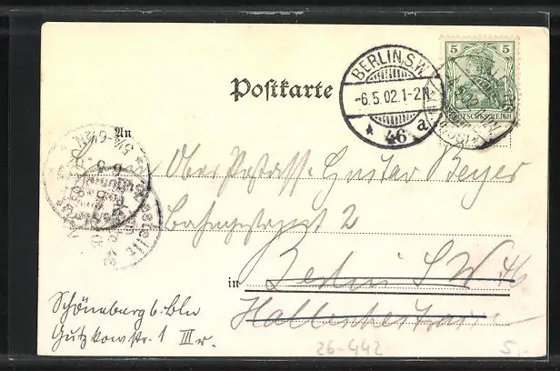 alte Ansichtskarte, gelaufen 1902, guter Zustand