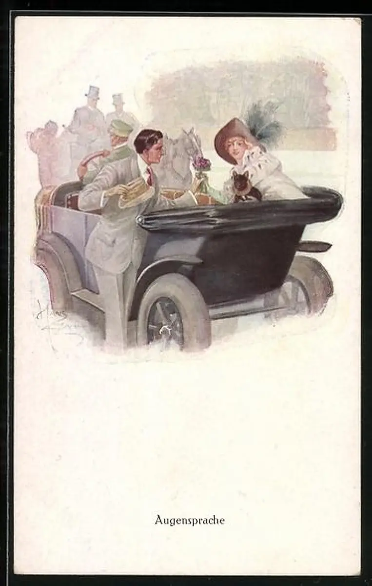 Künstler-AK H. Zahl: Augensprache, Paar in einem Automobil