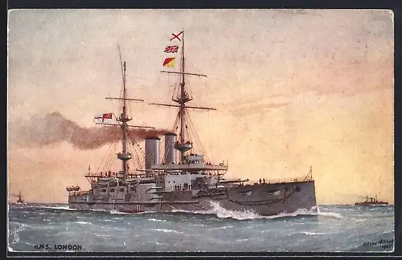 Künstler-AK H.M.S. London, britisches Kriegsschiff