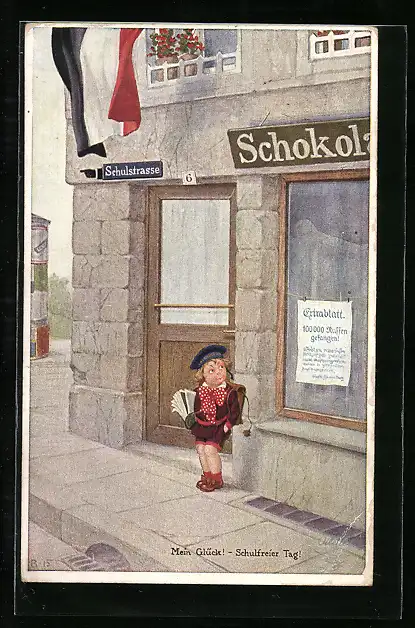 Künstler-AK H.S.B.: Mein Glück-Schulfreier Tag