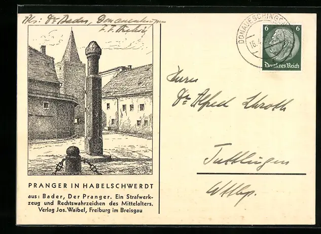 Künstler-AK Habelschwerdt, Abbildung des Prangers