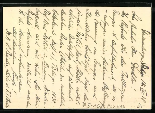 Personenbezogene Daten auf der Rückseite der Karte wurden durch blauen Textmarker unkenntlich gemacht. Die blauen Stellen sind auf die Vorderseite durchgeweicht und wirken sich negativ auf das Postkartenfoto aus