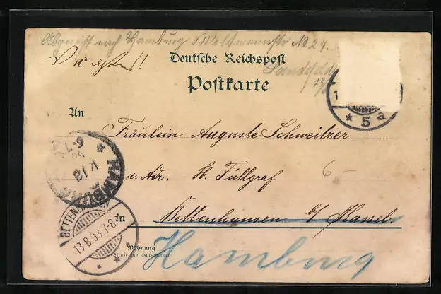 alte Ansichtskarte, gelaufen 1893, Briefmarke entfernt, guter Zustand