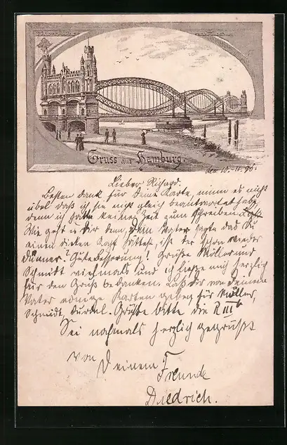 Künstler-AK Hamburg-Rothenburgsort, Elbbrücke