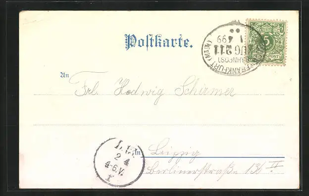 alte Ansichtskarte, gelaufen 1899, minimaler Einriss li. unten, Eckknicke re. oben, guter Zustand