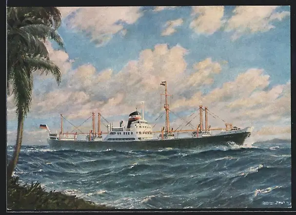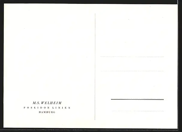 Künstler-AK Handelsschiff M.S. Welheim, Poseidon Linien Hamburg