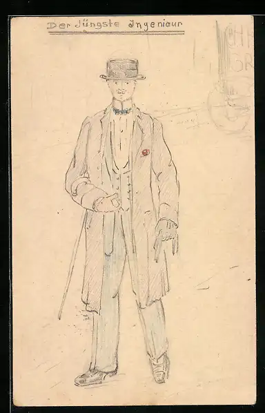 Künstler-AK Handgemalt: Der jünste Ingenieur