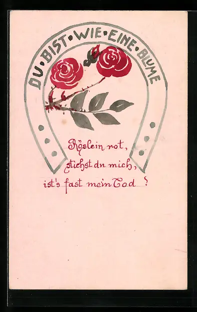 Künstler-AK Handgemalt: Du bist wie eine Blume, blühende Rosen