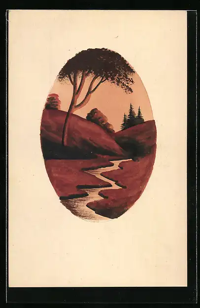 Künstler-AK Handgemalt: Flusspartie in der Dämmerung