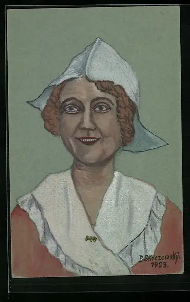 Künstler-AK Handgemalt: Frau in niederländischer Tracht