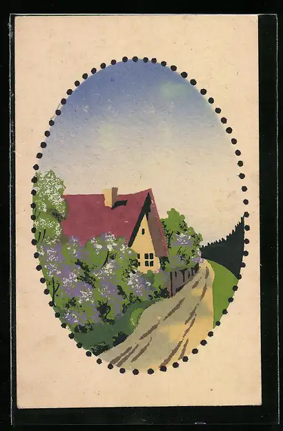 Künstler-AK Handgemalt: Haus hinter einem grossen Zaun
