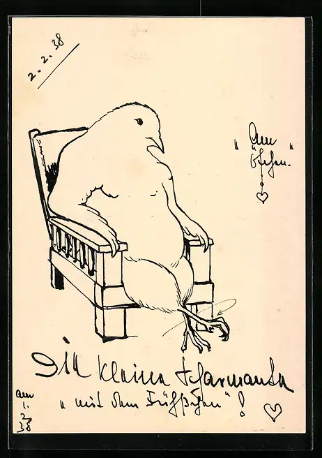 Künstler-AK Handgemalt: Henne in einem Sessel