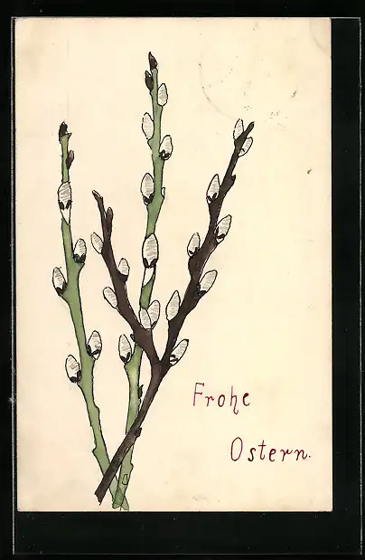 Künstler-AK Handgemalt: Kätzchenzweige, Ostergruss