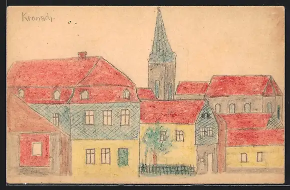 Künstler-AK Handgemalt: Kronach / Bayern, Ortspartie mit Kirche