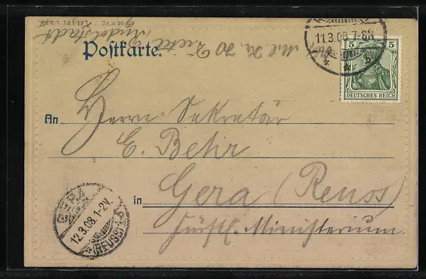 alte Ansichtskarte, gelaufen 1908, guter Zustand
