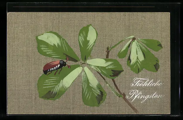Künstler-AK Handgemalt: Maikäfer mit Glückwunsch zu Pfingsten