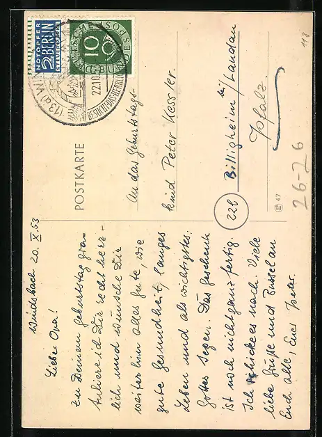 alte Ansichtskarte, gelaufen 1953, guter Zustand