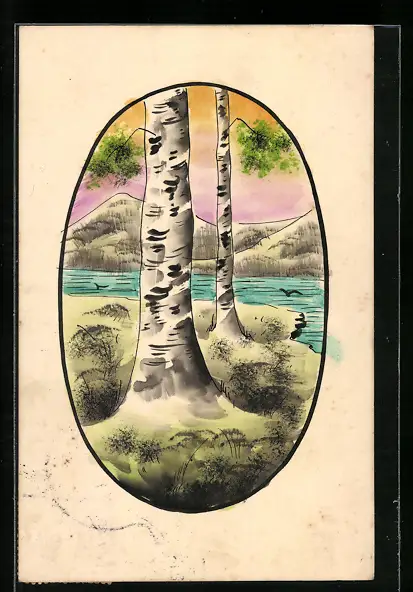 Künstler-AK Handgemalt: Motiv mit zwei Birken