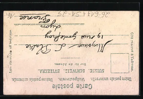 Personenbezogene Daten auf der Rückseite der Karte wurden durch blauen Textmarker unkenntlich gemacht. Die blauen Stellen sind auf die Vorderseite durchgeweicht und wirken sich negativ auf das Postkartenfoto aus