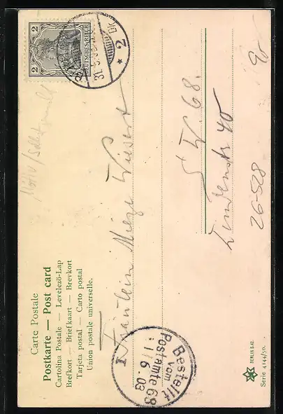alte Ansichtskarte, gelaufen 1903, guter Zustand