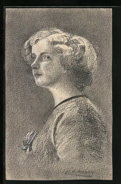 Künstler-AK Handgemalt: Porträt einer jungen Frau