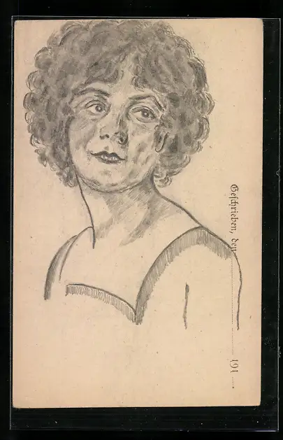 Künstler-AK Handgemalt: Portrait einer Frau mit Locken