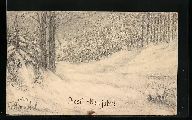 Künstler-AK Handgemalt: Prosit Neujahr im Wald
