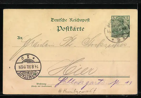 alte Ansichtskarte, gelaufen 1900, guter Zustand