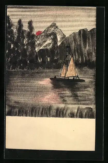 Künstler-AK Handgemalt: Segelpartie am Abend