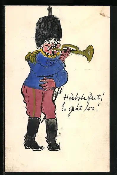 Künstler-AK Handgemalt: Soldat mit Trompete