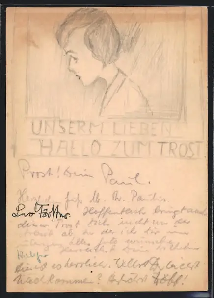 Künstler-AK Handgemalt: Unserm Lieben Hallo zum Trost