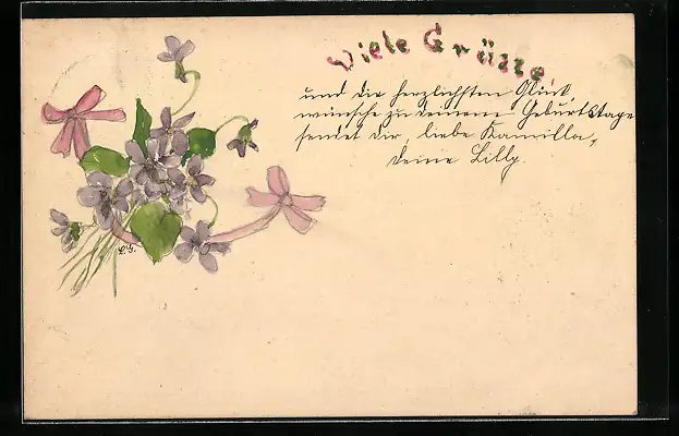 Künstler-AK Handgemalt: Veilchen mit Schleifen
