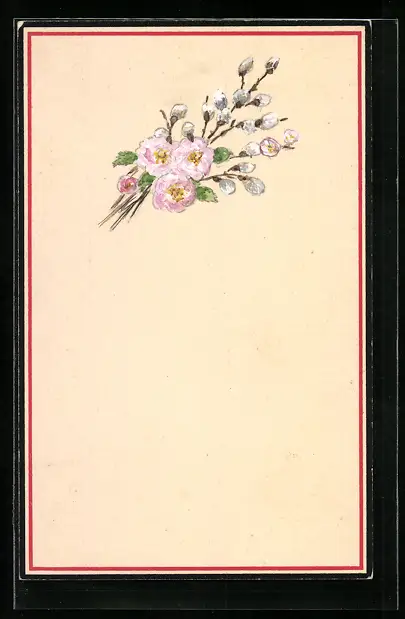 Künstler-AK Handgemalt: Wildrosen und Weidenkätzchen