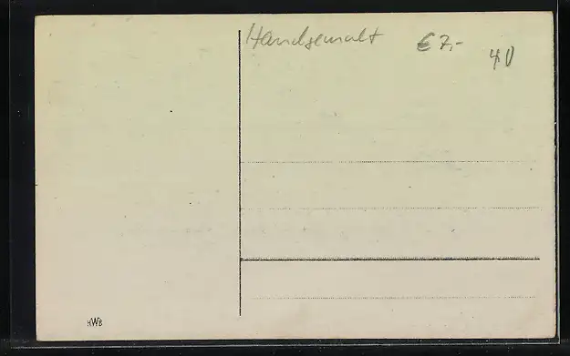Personenbezogene Daten auf der Rückseite der Karte wurden durch blauen Textmarker unkenntlich gemacht. Die blauen Stellen sind auf die Vorderseite durchgeweicht und wirken sich negativ auf das Postkartenfoto aus