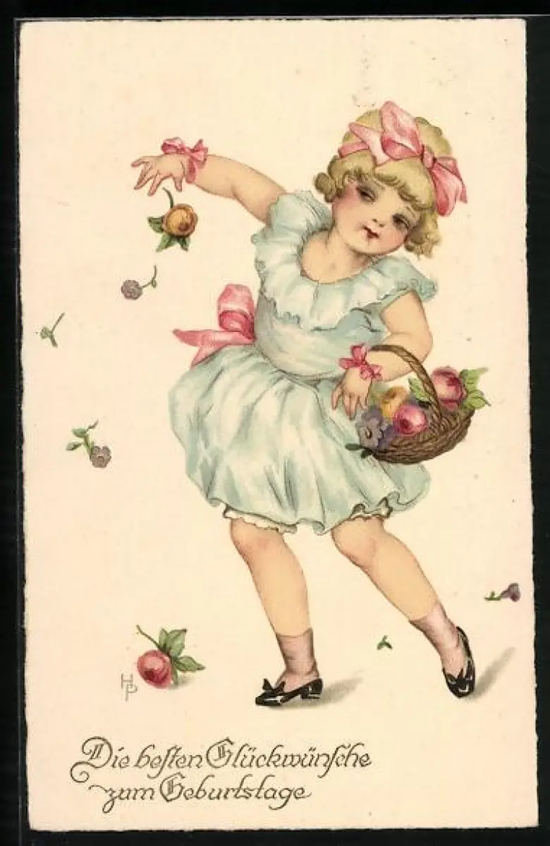 Künstler-AK Hannes Petersen: Mädchen lässt Blumen zu Boden fallen