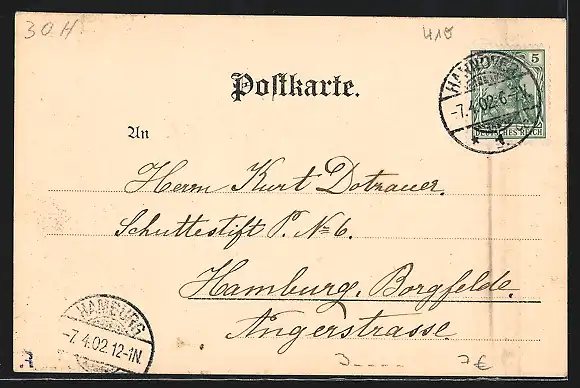 alte Ansichtskarte, gelaufen 1902, guter Zustand