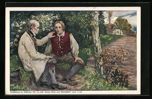 Künstler-AK Hans Baluschek: Vater gibt seinem Sohn Rat