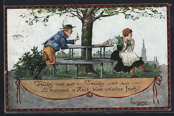 Künstler-AK Hans Boettcher: Trutz net so..., Liebespaar