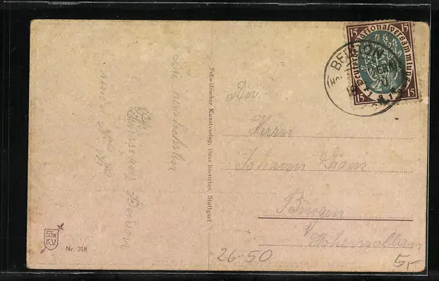 alte Ansichtskarte, gelaufen, Bugspur oben rechts, guter Zustand