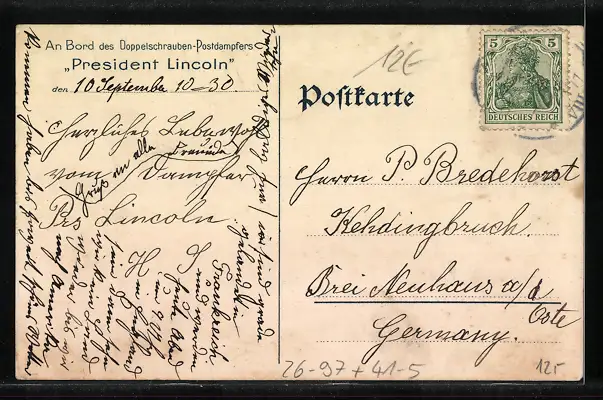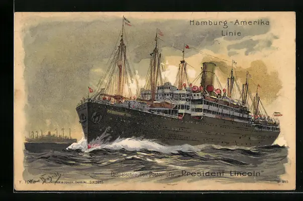Künstler-AK Hans Bohrdt: Doppelschrauben-Postdampfer President Lincoln