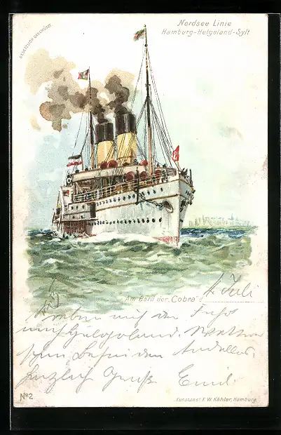 Künstler-AK Hans Bohrdt: Salondampfer Cobra vor Helgoland