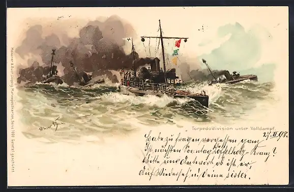 Künstler-AK Hans Bohrdt: Torpedo-Division im offenen Meer