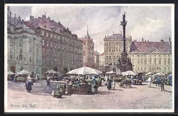 Künstler-AK Hans Götzinger: Wien, Markttag am Hof
