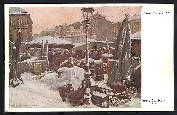 Künstler-AK Hans Götzinger: Wien, Naschmarkt im Winterglanz